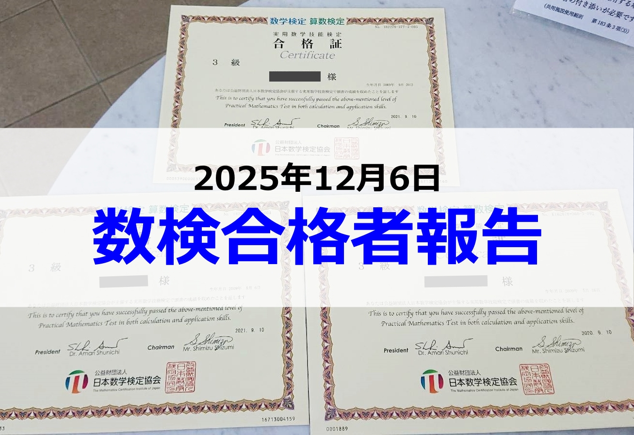 【2024年3月】数検合格者報告 2024 3/28 お知らせ 2024年3月28日 目次3月数検合格者 ・3級 3名合格・3級1次 3名合格 合計合格者 準2級10名準2級1次11名3級37名 お知らせ この記事が気に入ったら フォローしてね! Follow Me よかったらシェアしてね! URLをコピーしました! URLをコピーしました! 【2024年1月】数検合格者報告 【お知らせ】生徒大募集中です 関連記事 【2025年12月6日】数検合格者報告 2025年12月27日 【2025年12月】数検合格者報告 2025年12月13日 【2025年11月】数検合格者報告 2025年12月10日 【2025年10月】数検合格者報告 2025年11月19日 【重要】現在、新規募集を停止しております 2025年11月10日 【2025年8月(9/20)】数検合格者報告 2025年10月13日 【2025年8月(8/23)】数検合格者報告 2025年9月24日 【2025年8月】数検合格者報告 2025年8月22日