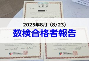【2025年8月(9/20)】数検合格者報告 2025 10/13 お知らせ 2025年10月13日 8月(9/20)数検合格者 ・準2級 1名・3級 2名・3級1次 5名・5級1次 2名 合計合格者 準2級19名準2級1次17名3級70名 お知らせ この記事が気に入ったら フォローしてね! Follow Me よかったらシェアしてね! URLをコピーしました! URLをコピーしました! 【2025年8月(8/23)】数検合格者報告 関連記事 【2025年8月(8/23)】数検合格者報告 2025年9月24日 【2025年8月】数検合格者報告 2025年8月22日 【2025年6月(6/21)】数検合格者報告 2025年7月10日 【2025年6月】数検合格者報告 2025年6月30日 【2025年4月】数検合格者報告 2025年5月15日 【2025年2月】数検合格者報告 2025年3月2日 【2025年1月】数検合格者報告 2025年2月10日 【中学受験をした方対象】新規生徒募集のお知らせ 2025年1月25日