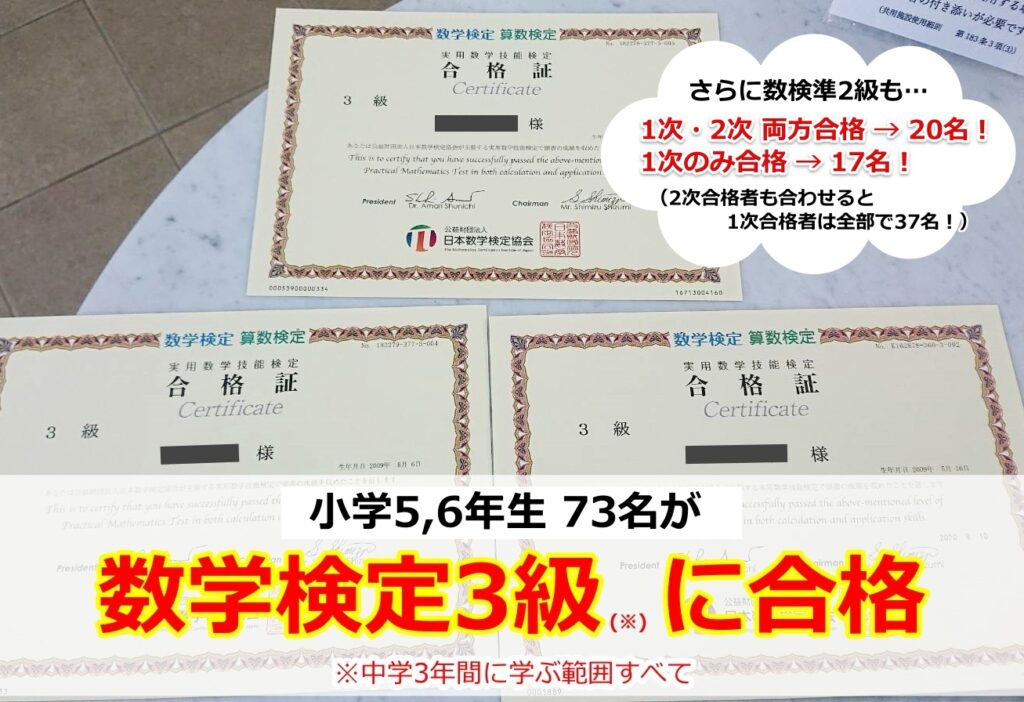 数検という目標に向かってコツコツ取り組む姿勢、そして合格した時の喜びと自信を経験できました。